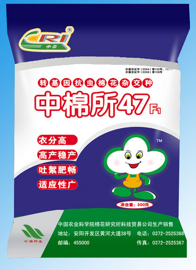 中棉所63(原代号:中001)是中国农科院棉花研究所和生物技术所以常规陆地棉新品系“9053”为母本,以国产双价转基因(Bt+CpTI)抗虫棉新品种改良系sGK9708选系P4为父本,配制成的双价转基因抗虫棉杂交种(F1代),2004-2005年参加长江流域国家棉花品种区域试验,表现突出,2006年参加长江流域棉花品种生产试验,并在湖北、安徽、江西、江苏等地进行小面积示范,同年获得了农业部颁发的《农业转基因生物安全证书(生产应用)》,证书号:农基安证字(2006)第219号和第220号。2007年经国家农作物品种审定委员会审定通过,适宜在湖北全省,湖南北部,四川盆地,河南南阳,江苏、安徽淮河以南(盐城除外),浙江沿海的长江流域棉区春播种植。